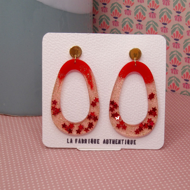 Ce bijoux est réalisé à la main en résine époxy. Puces d'oreilles en acier inoxydable. Chaque pièce est unique et ne peut donc être reproduite à l’identique.